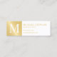 En snyggt för vit och guld med modern elegant med information i guld professionell serif font stil på vit bakgrund med vit monogram på guld sida gräns.