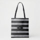 En enkel, elegant, svart snyggt och silver glitter-stripe som du kan anpassa med ditt monogram. Vi har lagt till en vit bakgrund färg längst bak i väskan, men du kan ändra den så att den matchar framsidan eller gå med ett annat, kontrasterande färg. Anpassa den till kostym ditt eget stil.