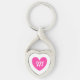 Monogram fuchsia rosa hjärta på vitt twisted heart silverfärgad nyckelring