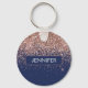 Rosa Guld - Rosa och Marinblå Falsk Glitter Glans Elegant och Modern Chic Trendig Lyx Monogram Nyckelring. Dessa monogram - lägg till ditt eget namn anpassade bilmattor kan uppdateras med ditt namn.