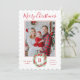 Fungerande Preppy Red Bow Garland Photo Helgdag Card, anpassningsbar-fotojulkortsredigerbar text.