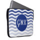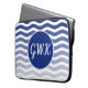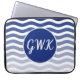 Blått, vinkart skum på framsidan av den här bärbara datorns neoprenskyddande fodral. Lägg till ditt monogram i textvalet stil, storlek och färg för att göra fodral till ditt eget. En underbar gåva till en graderande student eller en "arbetare på resande fot".