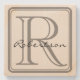 En enkel men klasssäker design med en rundad grått monogramkvadrat och rum för ett första och efternamn. Om efternamnet är kortare eller längre än exemplet, anpassar användan det för att justera teckensnittet storlekt. Ursprunglig design av Night Uggla Menagerie, 2015.