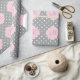 Monogrammat vitt på grått-polka punkt mönster med pastells rosa-accenthölje pappert. Utformningen har en vit och grått-polka punkt mönster och en pastellform för rosa quatrefoil med anpassningsbarnas inledande form.