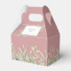En elegant bröllop-förmånslåda med delikat vattenfärgsfärg lämnar på en dammig ro-bakgrund som ramlar in ditt monogram initialer, speciellt datum, och tack för det budskap du gav i modern typografi. Ett perfekt sätt att tacka gästerna! Designad av Thisisnotme©