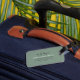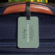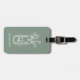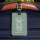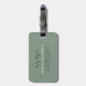 Denna eleganta monogram-golfbag eller bagagetikett har en enkel illustration av en golfbag fylld med klubbor på en sagegrön bakgrund på framsidan. Designen inkluderar ett klassiskt serif-teckensnitt initial monogram på bagen i vitt, som smälter samman sömlöst med den övergripande looken. Under monogrammet visas det fullständiga namnet i ett matchande vitt serif-teckensnitt för en ren och sofistikerad touch.