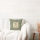 Monogram denna gröna och tan/beige bufflarandiga prydnadskudde med din initial och efternamn. Du kan lägga till valfri text längst ned. Gör en fin bröllopsgåva, brudtugggåva eller köp dem till ditt hem.
