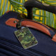 Bagagetagg med ljust grönt, medelstor grönt, brun och svart utomhusjaktkamouflage mönster. Anpassa med dina initialer för monogram eller namn, namn och adress med hjälp av de enkla mallarna. Teckensnitt färg, stil och storlekt teckensnitt är anpassade.