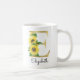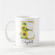 Monogram gul bokstavsstil med solroser initial mugg, perfekt jul eller födelsedagspresent till en dotter, mamma, faster eller syster. Anpassad med monogram bokstaven E och ett namn. Andra bokstäver finns tillgängliga i min butik.