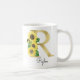 Monogram gul bokstavsstil med solroser initial mugg, perfekt jul eller födelsedagspresent till en dotter, mamma, faster eller syster. Anpassad med monogrammet bokstaven R och ett namn. Andra bokstäver finns tillgängliga i min butik.