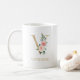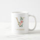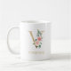 Monogram Guld Brev V | Blommigt Rosa White Grönt Kaffemugg