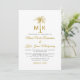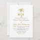 Monogram Guld Palmträd Formellt Bröllop på Strande Inbjudningar