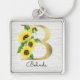 Monogram Guld Solros Girly-Blommigt - första B Fyrkantig Silverfärgad Nyckelring