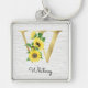 Monogram Guld Solros Girly Blommigt - första W Fyrkantig Silverfärgad Nyckelring