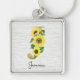 Monogram Guld Solros Girly Blommigt Initial J Fyrkantig Silverfärgad Nyckelring