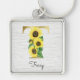 Monogram Guld Solros Girly Blommigt Initial T Fyrkantig Silverfärgad Nyckelring