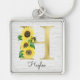 Monogram Guld Solros Girly Blommigt Inledande H Fyrkantig Silverfärgad Nyckelring