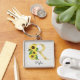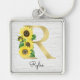 Monogram Guld Solros Girly Blommigt Inledande R Fyrkantig Silverfärgad Nyckelring