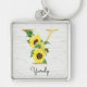 Monogram Guld Solros Girly Blommigt Inledande Y Fyrkantig Silverfärgad Nyckelring