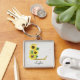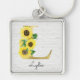 Monogram Guld Solros Girly Blommigt Inledning L Fyrkantig Silverfärgad Nyckelring
