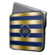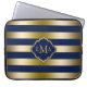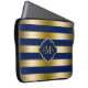 Monogram Guld Tones & Dak Blue Rand Mönster Laptop Sleeve