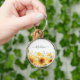Monogram Gult Blommor Solrosblommor Blommigt Botan Rund Silverfärgad Nyckelring