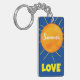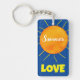 Sommartypografi kärlek i vit och ljus gult. Gultens orange solljus. Djupblå bakgrund. Baksidan har Monogram som första coola, vitt teckensnitt mot blå bakgrund. Obs! Om du överför din egen bild klickar du för att anpassa den för att flytta runt text, ändra teckensnittstyp, storlek, färg eller färg. Originalteckningsutkast av TamiraZDesigner.