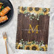 Den här bärbara datorn med solrosrecept i monogrammad gult med eucalyptus löv och rustiskt brunträ är lämplig för att organisera din anpassningsbar-kokbok och omhuldade recept.