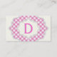 Monogram i ram och rosa, vita affärskort för att fånga gingham mönster öga, med ditt monogram i en elegant och klassad elfenben ram med grått kontur. Det finns en annan ram i den med en mönster i shock rosa, vit. Den här snyggten, den gigantiska utformningen är modern med ett reflekterande/vintage-fläkt. Det parisiska teckensnittet används för texten. Det är helt anpassade och du kan anpassa det och lägga till texten, namn eller initialer. Du kan ändra bakgrundsvalet färg - rosa - från diagrammet Zazzle färg. Den här sofistikerade utformningen av affärskortet för personlig är perfekt för använda för privatpersoner eller professioneller.