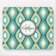 Cute, girly, trendig ikat diamant mönster i tårblått, mynt grönt, grått och vitt. En coola, en modern stamdesign med grått-etiketten ram för dig anpassningsbar monogram för brev och personlig namn.
