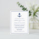 Nautisk tematisk bröllopsinbjudan med ett marint blåankare med ditt monogram på båda sidor och din händelseinformation omgiven av ett gräns, över en vit bakgrund. Baksidan är en passande skugga av marinblått. En enkel men elegant-design som är perfekt för ett badbröllop på sommaren. De här bröllopsinbjudningarna i billigt trycks på lakan av papper för ett budgetvänligt alternativ.