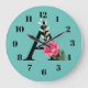 Monogram Initial Brev A i vita Rosa ros Stor Klocka