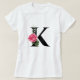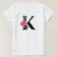 Monogram Initial Brev K i Svarta med Rosa ros T Shirt