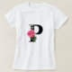 Monogram Initial Brev P i Svarta med Rosa ros T Shirt