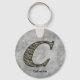 Monogram initial C fylld med ömtåliga vita hortensia blommor nyckelring. Design av Susan.
