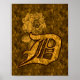 Elegant monogram brev D i guld med en ömtålig päronblomma poster tryckning.