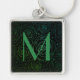 Monogram Initial Dark Floral Rose Green Gradiant Fyrkantig Silverfärgad Nyckelring