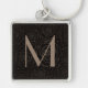 Monogram Initial Dark Floral Rose Timeless Neutral Fyrkantig Silverfärgad Nyckelring