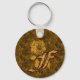Monogram initial F i guldsatin med en delikat gyllene pion blomma nyckelring. Design av Susan.