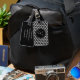 Monogram Initial Herringbone Mönster Black & White Bagagebricka