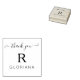 Chic typografi ge detta monogram gummi frimärke är ett feminin utseende, perfekt för kvinnoägda företag i chef dam. Initiativet för serif monogram kan representera ditt för- eller efternamn. I det här exemplet har vi använt det för efternamnet. Det första namn visas i en elegant som sans serif-teckensnitt i stort brev, med mellanrum mellan anpassningsbar... medan du skriver kommer ditt namn att bli "blanksteg". Texten "tack" skrivs i skript för nedre fodral med snabb blomning före och efter texten. Om du ser över tacktexten, behållor du de två små rutorna före och efter texten i ställe för att behålla blomningen. All exempeltext kan enkelt revideras på anpassningsmallen.