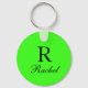 Monogram Initial Namn Neon Grönt Solid Färg Coola Nyckelring