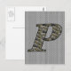 Monogram initial P fylld med ömtåliga vita hydrangea blommor vykort. Klicka på Anpassa för att lägga till ditt meddelande på baksidan och framsidan. Perfekt för datum sparande och nya adressmeddelanden eller samlande. Denna bild finns tillgänglig på många produkter i mitt galleri.