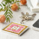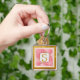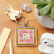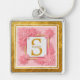 Monogram initial "S" Blommig - Rosa rosor & Guld Fyrkantig Silverfärgad Nyckelring