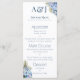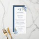 Denna eleganta bröllopsmeny har ett elegant blomtema med vackra hortensia blommor. Två exempel på monogram initialer är tryckta i den övre delen. Du kan anpassa menyn till att inkludera dina egna initialer och anpassade maträtter. En delikat bukett av akvarell blå hortensior är tryckt i övre högra hörnet, och en annan i nedre vänstra hörnet.