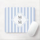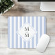 Mousepad med en ljusdammig blå och vit strimmig mönster med initialer i mörk grått över en vit rombform. Alla färg är anpassade.