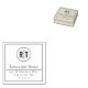Elegant returadress gummi frimärke med ditt monogram initialer åtskilt med en lodrät inuti en cirkel gräns med namn och adress nedanför. En modern, minimal design med en tunn kvadrat gräns.