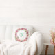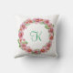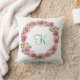 Rosa och grön blomsterkrans med din initial inuti. Lägg till din egen initial och gör kudden personlig.