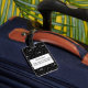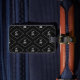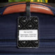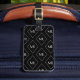 Elegant and simple luggage tag with geometric pattern and personalized monograms, with diamond shapes on black