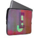 Monogram Initials Grunge Funky Purple Green Art Laptop Sleeve. Dopamine decor in playful colors. Change the initials to your own. Give as a gift to family, to make their laptop case unique.